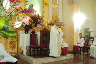 A Santa Missa Solene foi presidida pelo Bispo Emérito da Diocese de Nazaré, Dom Jorge Tobias de Freitas. Concelebrou com ele o Pe. Artur Alexandre, Pároco da Paróquia de Nossa Senhora do Rosário em Goiana - PE e nosso Pároco Pe. João Santana. O Bispo emérito, Dom Jorge, fez uma brilhante reflexão, aprofundando a Fé, o mesmo citou Abraão como Pai da Fé e Maria como Exemplo de Fé, por ter acreditado no plano de Deus para ser a mãe do Salvador, Jesus Cristo. Convidou as famílias a praticarem o diálogo fraterno e doutrinário no que se refere a transmissão da Fé e a ética na família. Crê na Igreja por meio dos santos padres e profetas, observando assim, as verdades de Fé dos doze artigos da oração do credo. Tema da nossa Festa "O Credo símbolo de nossa Fé".